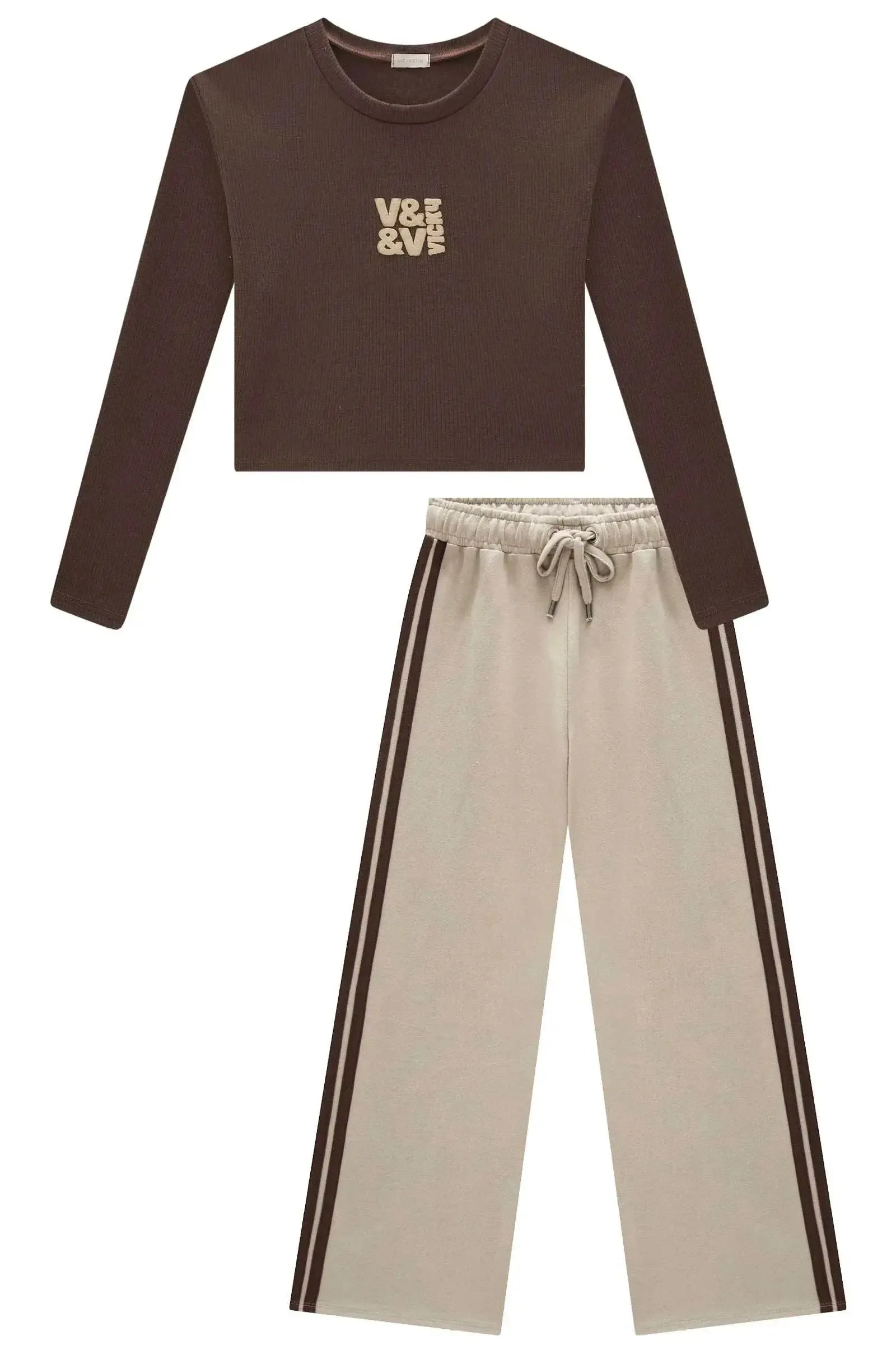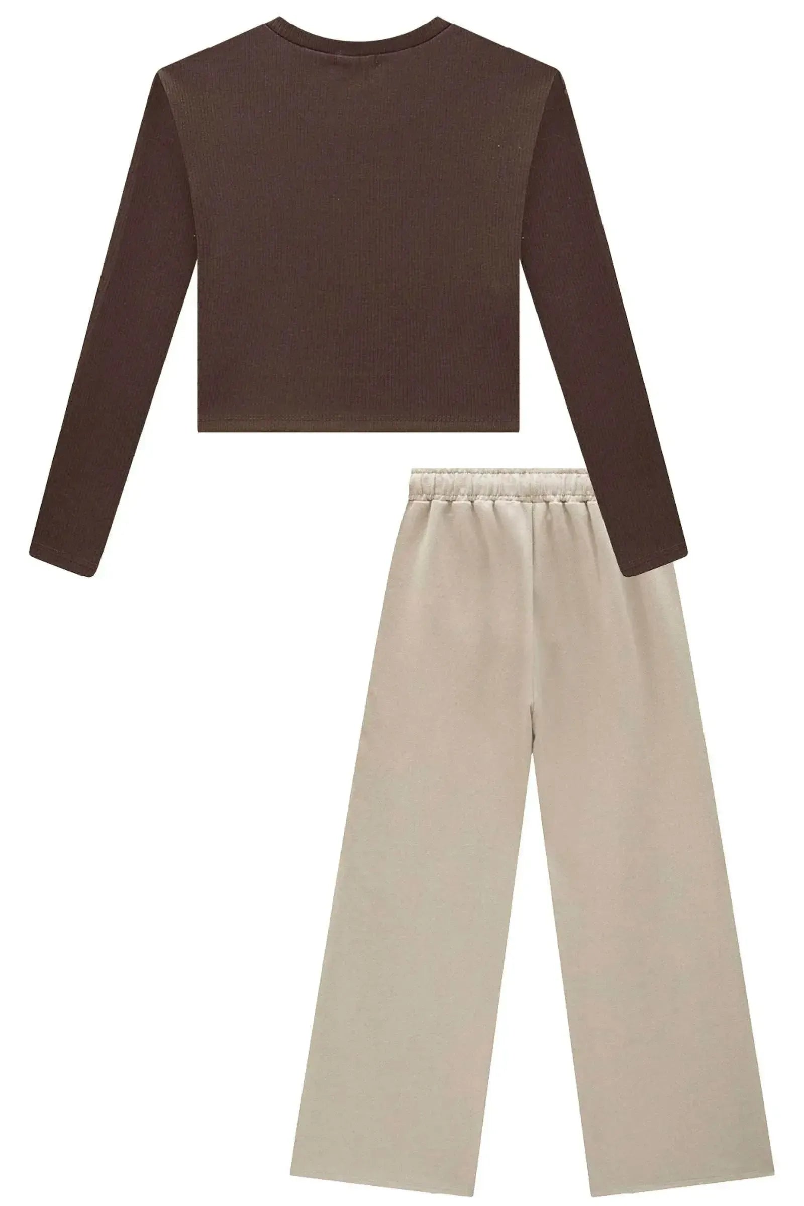 O conjunto de blusa cropped em canelado liz e calça wide em moletom sem pelúcia, é a escolha perfeita para as meninas que amam um look cheio de conforto, sem abrir mão do estilo no dia à dia! Disponível em uma cor super estilosa - marrom - ela é uma peça essencial, perfeita para montar diversos looks e deixar o inverno das pequenas ainda mais estiloso! A estampa divertida, adiciona um charme especial à peça.