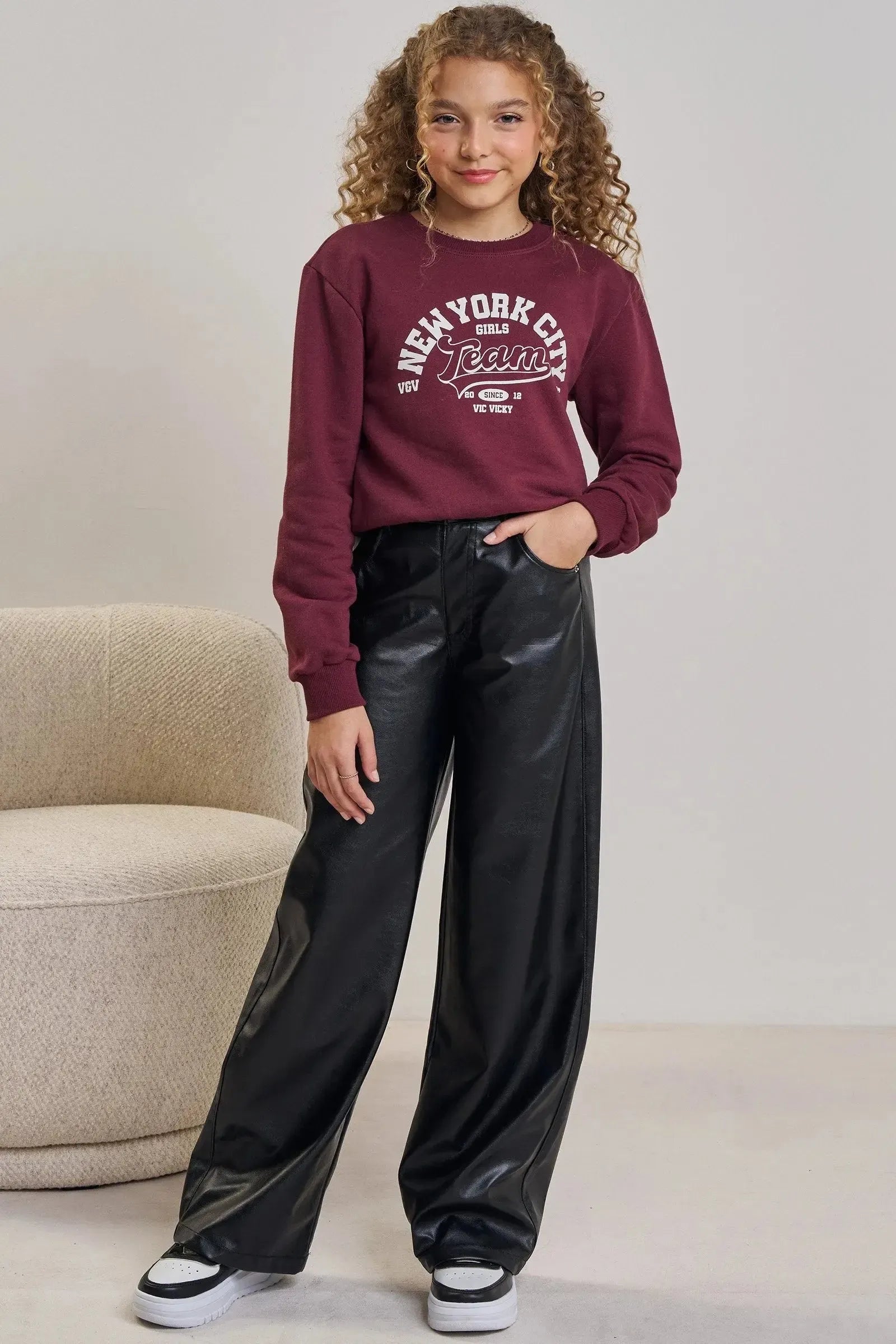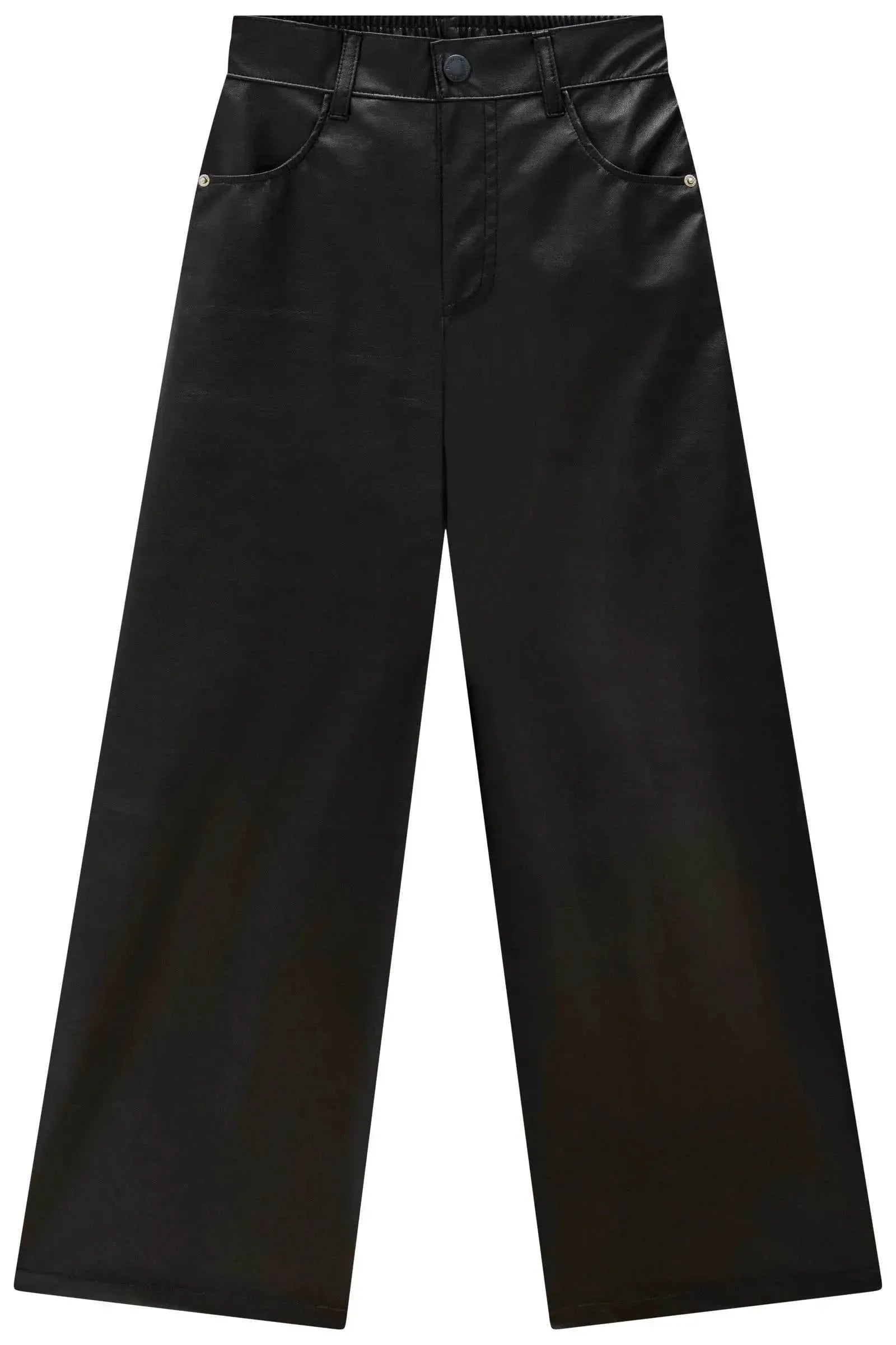 A calça wide leg em couro sintético, é a escolha perfeita para as meninas que amam um look cheio de conforto, sem abrir mão do estilo no dia à dia! Disponível em uma cor super estilosa - preto - ela é uma peça essencial, perfeita para montar diversos looks e deixar o inverno das pequenas ainda mais estiloso!