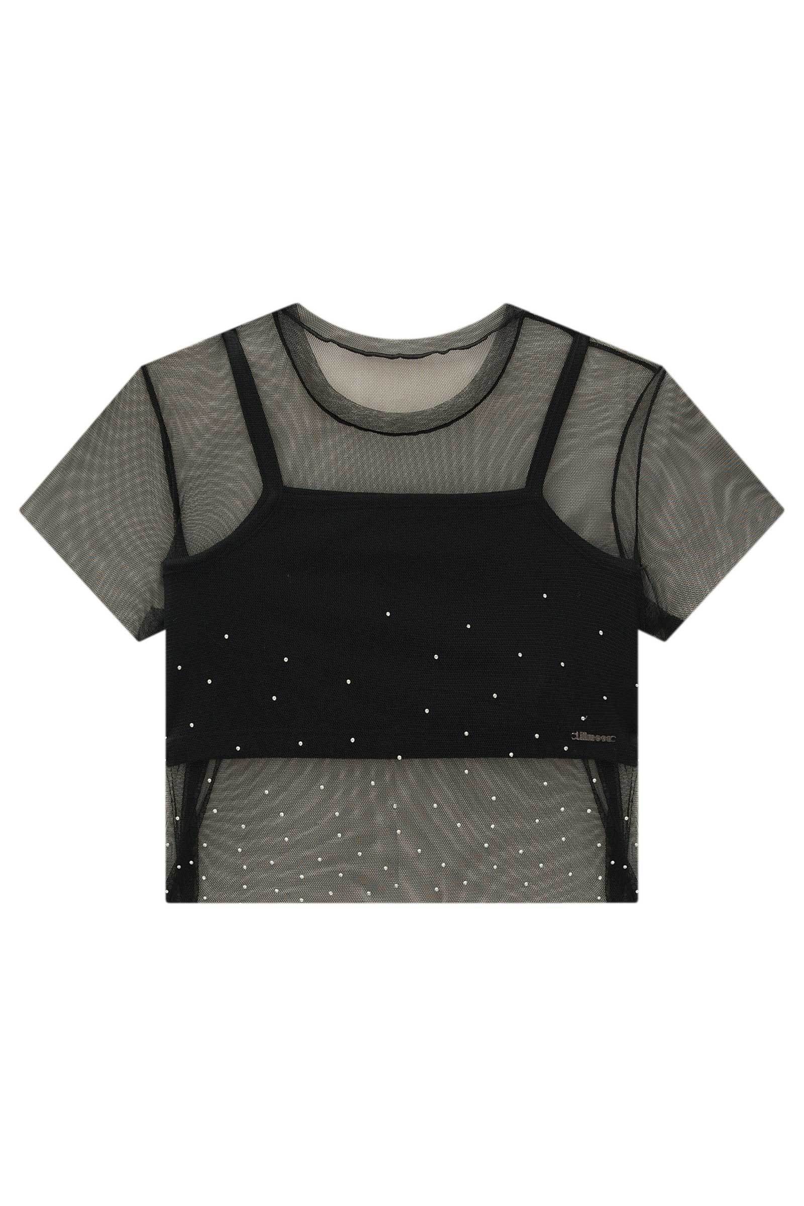 A blusa boxy em tule e top em cotton é perfeita para adicionar um toque de delicadeza e brilho aos seus looks! Disponível em duas cores super estilosas - preto e rosa - esta peça da Lilimoon oferece um caimento impecável e um toque suave. A aplicação de strass adiciona um charme especial à peça.