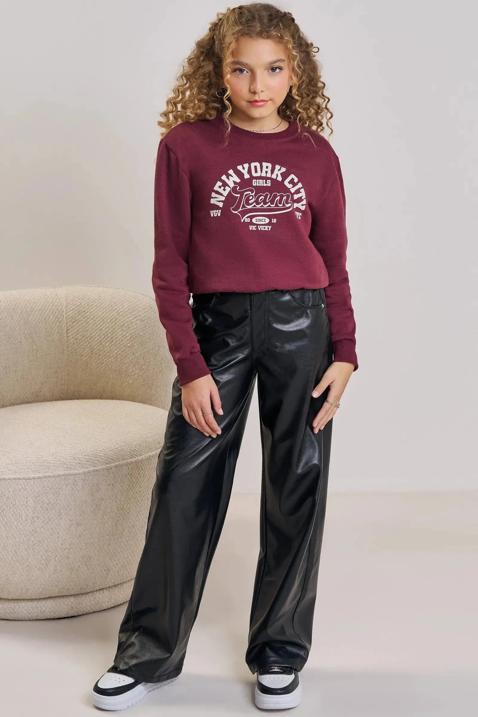 O blusão boxy over em moletom com pelúcia, é a escolha perfeita para as meninas que amam um look cheio de conforto, sem abrir mão do estilo no dia à dia! Disponível em uma cor super estilosa - bordô - ela é uma peça essencial, perfeita para montar diversos looks e deixar o inverno das pequenas ainda mais estiloso! A estampa divertida, adiciona um charme especial à peça.