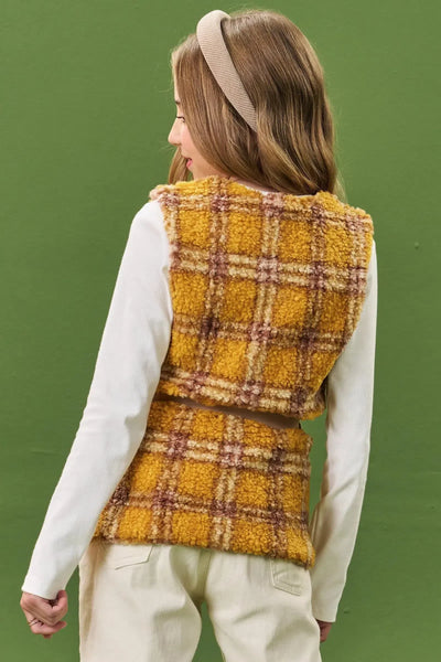 O modelo alongado, com comprimento abaixo da cintura, confere um ar moderno e despojado ao look. A estampa xadrez adiciona um toque de estilo e personalidade à peça. O cinto em couro sintético acompanha o colete, permitindo ajustar a peça ao corpo e definir a cintura, criando um visual mais delicado e elegante.