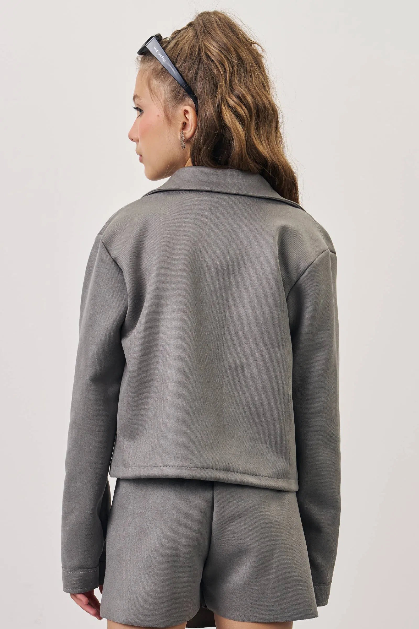 Jaqueta Shacket Boxy em Suede Twill 80202 Vic&Vicky Teen Menina