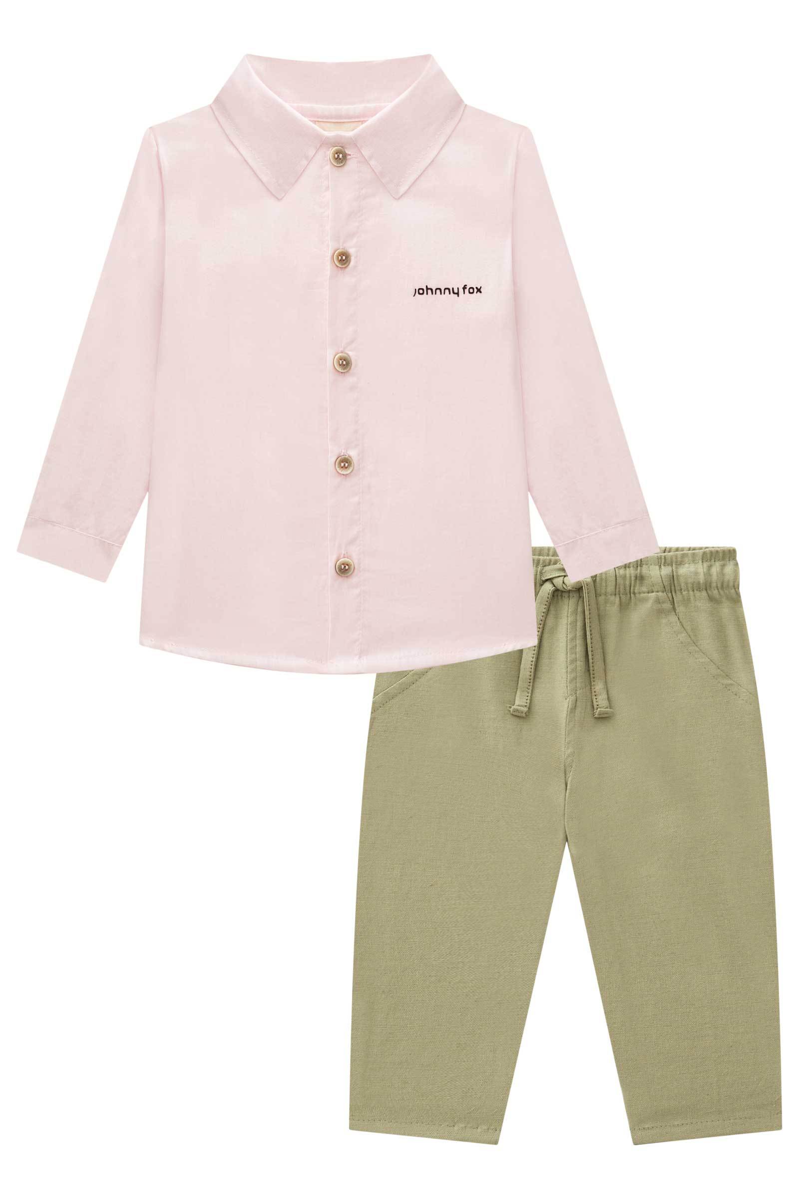 Cj. de Camisa em Tric Berg Twill 100% Algodão e Calça Skinny Comfort em Linho Panamá C Elas 74278 Johnny Fox