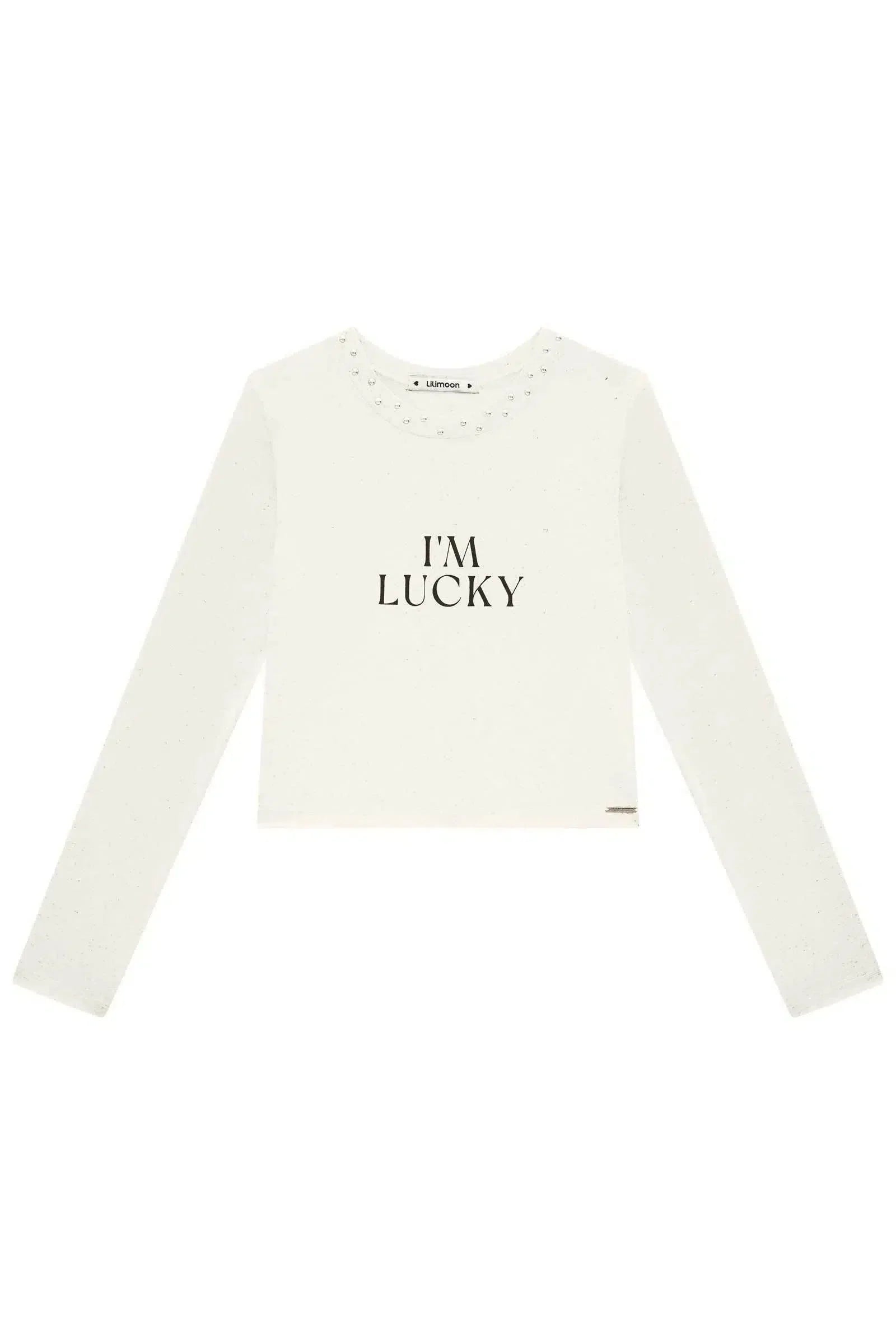 Blusa Cropped Teen Feminina Em Cotton Com Aplicação De Strass Lilimoon A blusa cropped em cotton com aplicação de strass e frase "I'm Lucky" é a escolha perfeita para as adolescentes que buscam um look moderno e confortável, com um toque de otimismo. Com seu caimento ajustado e detalhes charmosos, ela é perfeita para criar combinações estilosas e arrasar em qualquer ocasião. Confeccionada em cotton de alta qualidade, garante o máximo de conforto e durabilidade. Disponível em duas cores clássicas, essa blusa é um must-have para o seu guarda-roupa! Combine com jeans, shorts ou saia e crie looks incríveis para o dia a dia ou para aquela festa especial. Não perca a chance de ter essa peça única e exclusiva e espalhar positividade por aí!