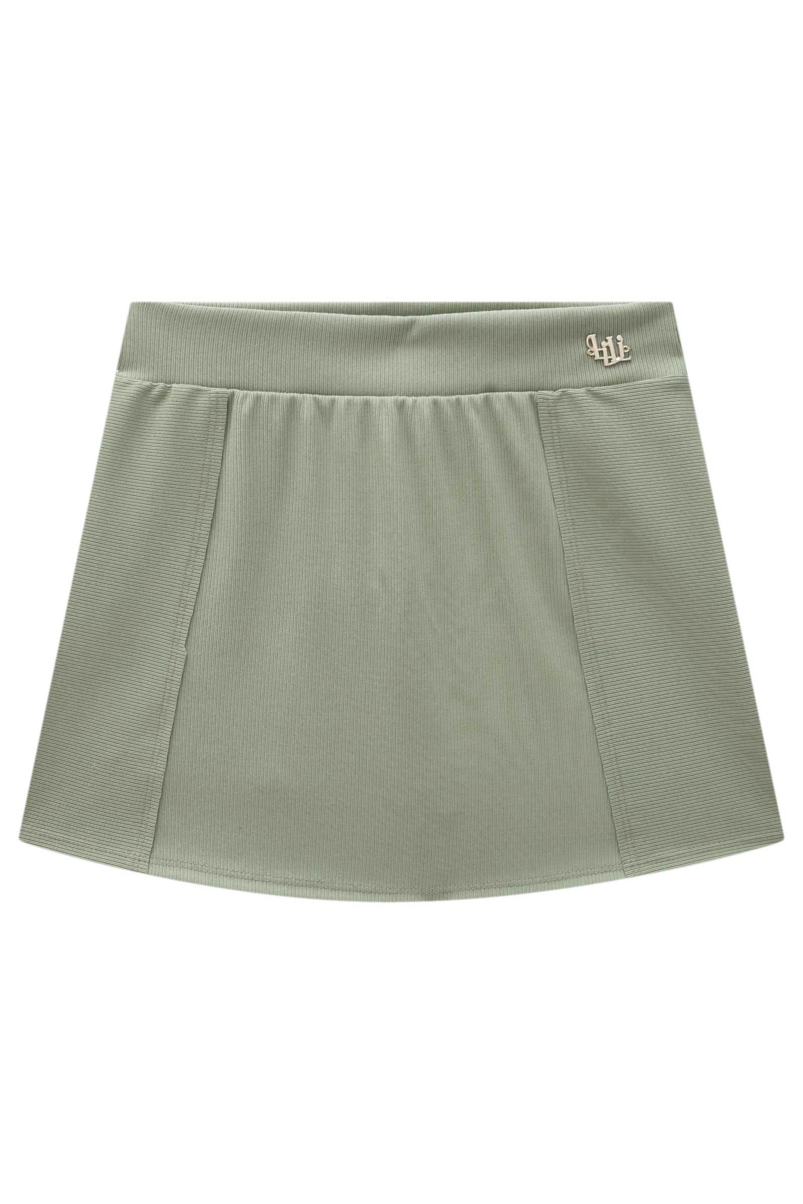A saia em canelado fancy com shorts embutido, oferece a combinação perfeita de estilo e conforto. Disponível em três cores super estilosas - bege, verde e preto - esta peça versátil é ideal para quem busca um look sofisticado e arejado, sem abrir mão da praticidade e segurança.