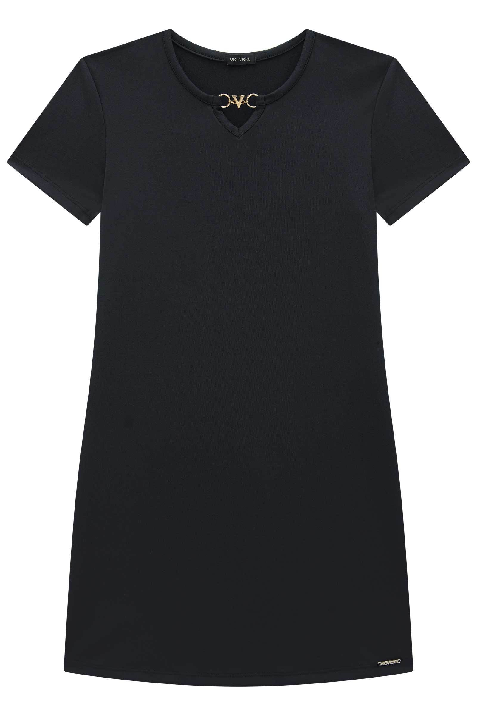 Vestido em Poliamida O vestido em poliamida Vic é sinônimo de conforto, estilo e atitude! Com design minimalista e toque sofisticado, ele é perfeito para as meninas que amam um visual moderno e versátil. Confeccionado em malha de poliamida com elastano, o tecido proporciona um caimento leve, toque macio e alta elasticidade, garantindo conforto durante todo o dia. O detalhe de aviamento metálico personalizado ''V'' na gola traz um toque fashion e exclusivo da marca. Com modelagem reta e mangas curtas, o vestido é ideal para compor produções casuais ou urbanas, podendo ser usado com tênis, sandália ou até jaqueta por cima. É uma peça atemporal que combina com qualquer ocasião!