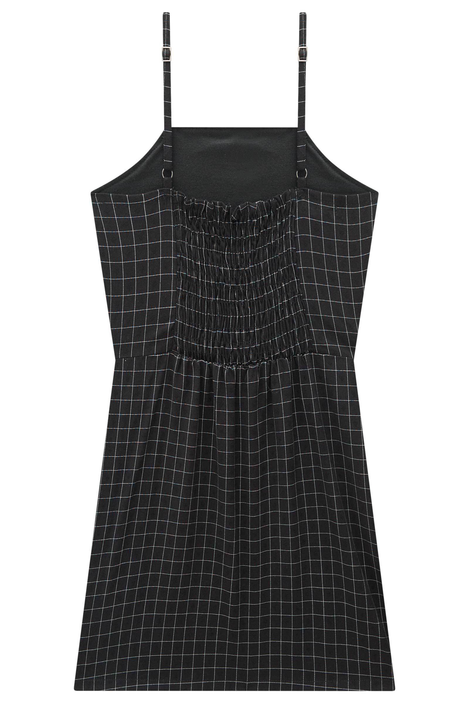 O vestido em viscose ryon, garante um caimento leve e confortável. Disponível em uma cor super estilosa - preto - este vestido é perfeito para diversas ocasiões, desde passeios no parque até festas de aniversário.