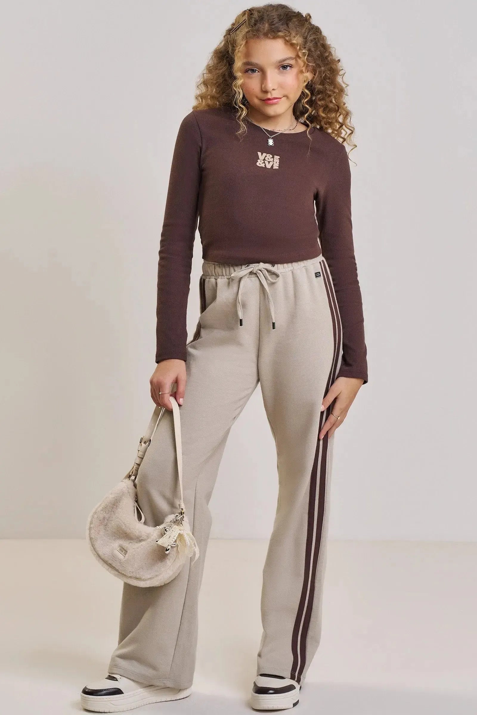 O conjunto de blusa cropped em canelado liz e calça wide em moletom sem pelúcia, é a escolha perfeita para as meninas que amam um look cheio de conforto, sem abrir mão do estilo no dia à dia! Disponível em uma cor super estilosa - marrom - ela é uma peça essencial, perfeita para montar diversos looks e deixar o inverno das pequenas ainda mais estiloso! A estampa divertida, adiciona um charme especial à peça.
